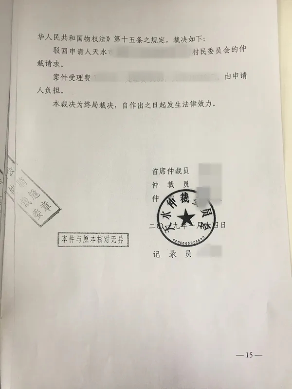 1、驳回申请人村民委员会的仲裁请求。